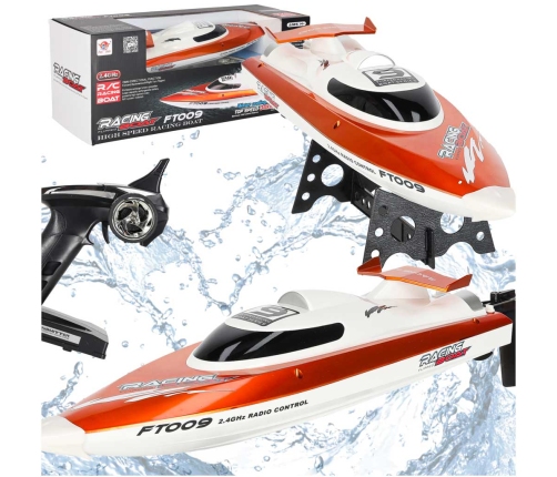 Iemetiet motorlaivu ūdenī un nospiediet vadības pults slēdzi, tā automātiski pagriezīsies un kā raķete pacelsies uz priekšu!