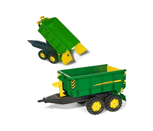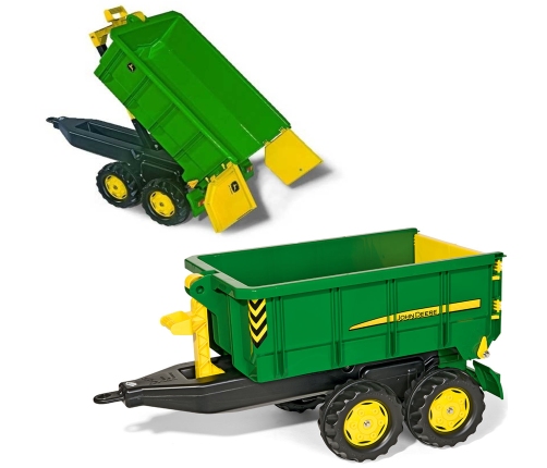 Przyczepa wywrotka od marki Rolly Toys na licencji John Deere to doskonały dodatek do każdej kolekcji zabawek rolniczych, zapewniający długie godziny kreatywnej zabawy. Dzięki funkcji wywracania skrzyni i otwieranym burty, zabawa staje się bardziej interaktywna i angażująca, produkt jest wykonany z trwałych materiałów, które zapewniają długotrwałe użytkowanie i odporność na uszkodzenia. Przyczepa pasuje do wszystkich traktorów Rolly Toys wyposażonych w uchwyt do holowania przyczepy. Dzięki temu można ją łatwo podłączyć i używać z różnymi modelami traktorków.
