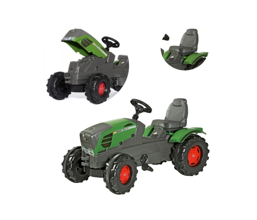 Wyjątkowy traktorek rollyFarmTrac Fendt 211 od marki RollyToys to doskonały traktor na pedały dla małego ogrodnika i farmera! To zabawka, która nie tylko bawi, ale także rozwija wyobraźnię i zachęca do aktywności na świeżym powietrzu. Układ mechaniczny jest całkowicie zabudowany i niedostępny dla dziecka, co zapewnia najwyższy poziom bezpieczeństwa. Specjalne nakładki na koła redukują hałas, co sprawia, że zabawa jest cichsza i bardziej komfortowa zarówno dla dziecka, jak i dla otoczenia. Dodatkowo pod maska traktorka znajduje się skrytka na drobiazgi - wystarczy podnieść maskę do góry i schować tam potrzebne zabawki.