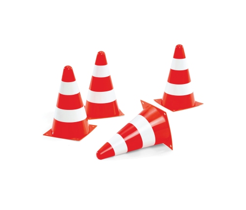 W zestawie znajdują się 4 pachołki. Produkt świetnie się sprawdza przy prowadzeniu pojazdów, jeździków, rowerków. Zestaw polecany do przedszkoli, szkół i sal zabaw.