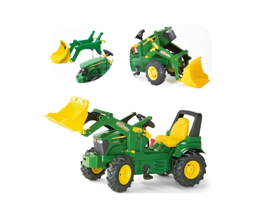 Traktor na pedały rollyFarmtrac John Deere 7930 od marki Rolly Toys jest nie tylko wytrzymały, ale również łatwy do utrzymania w czystości, co czyni go doskonałym kompanem do zabawy na świeżym powietrzu i w domu. Traktor wyposażony jest także w hamulec ręczny, który pozwala dzieciom poczuć się jak prawdziwi kierowcy. Możliwość samodzielnego hamowania dodaje realizmu i ekscytacji podczas zabawy, jednocześnie ucząc maluchy podstawowych zasad bezpieczeństwa na drodze. Dodatkowo, traktor można wyposażyć w odpinaną przyczepę, co daje jeszcze więcej możliwości kreatywnej zabawy. Dzieci mogą przewozić swoje ulubione zabawki, a także pomagać w ogrodowych pracach, co rozwija ich wyobraźnię i umiejętności motoryczne. Nie można zapomnieć o ruchomej, wyjmowanej łyżce od koparki, która jest kolejnym elementem dodającym traktorowi funkcjonalności i atrakcyjności. Dzięki niej dzieci mogą bawić się w małych budowniczych, przesypując piasek, ziemię czy inne materiały, co daje niekończące się możliwości zabawy. Główną atrakcją tego traktora jest jego przekładnia biegowa, która działa na zasadzie przerzutek rowerowych, oferując dwa biegi oraz funkcję wolnego koła. Dzięki temu, jazda traktorem jest płynna i dostosowana do umiejętności małych kierowców, a mechanizm przekładni łańcuchowej umożliwia bezpieczną i łatwą obsługę nawet dla najmłodszych. Cały układ mechaniczny jest starannie zabudowany, co gwarantuje, że dziecko nie ma do niego dostępu, zapewniając pełne bezpieczeństwo podczas zabawy.
