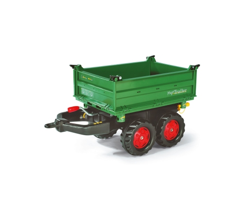 Rolly Toys Przyczepa wywrotka 2 osie zielona Przyczepa z wywrotką na 3 strony, jest stabilna. Posiada solidne koła, dzięki czemu maluch będzie mógł przewieźć w niej wiele rzeczy. Pasuje do każdego pojazdu Rolly Toys oprócz modeli rollyKids oraz rollyDumperKid