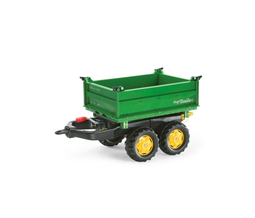 Rolly Toys Przyczepa wywrotka 2 osie zielona Przyczepa z wywrotką na 3 strony, jest stabilna. Posiada solidne koła, dzięki czemu maluch będzie mógł przewieźć w niej wiele rzeczy. Pasuje do każdego pojazdu Rolly Toys oprócz modeli rollyKids oraz RollyDumperKid.