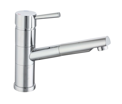 Izlietnes jaucējkrāns ir izgatavots no misiņa, tāpēc tam ir ilgs kalpošanas laiks. Krānam ir elastīga metāla izskata savienojuma šļūtene, 90° grozāms snīpis, metāla rokturis, keramikas diski, zems trokšņa līmenis, kā arī nomaināms 40 mm kārtridžs. Tas ir piemērots lielākajai daļai izlietņu. Šis krāns ir aprīkots ar "eko-klikšķa" funkciju un bērnu aizsardzību. Pateicoties izvelkamajam snīpim, jūs varēsiet labāk apmazgāt augļus un dārzeņus.