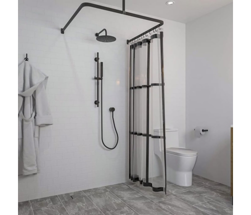 - Stipri un izturīgi: šie dušas aizkaru stieņi ir izgatavoti no alumīnija ar melnu pārklājumu, padarot tos izturīgus un noturīgus.