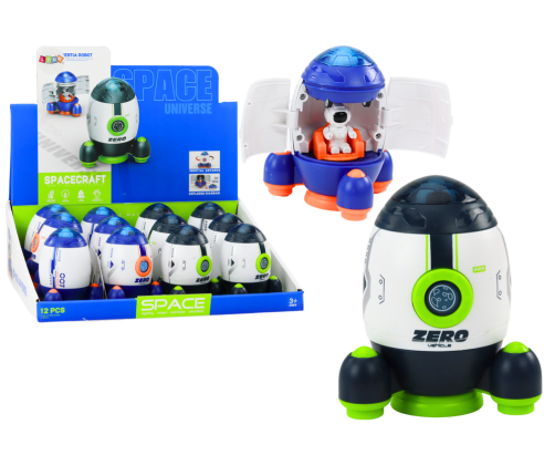 The rocket has an opening function, so children can look inside and discover surprises. Inside the rocket there is a figure of a cosmonaut ready to explore unknown galaxies. The set also includes a space vehicle with a tension drive, which allows for dynamic play and creative scenarios.