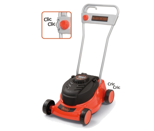 Kosiarka Black&Decker od cenionego francuskiego producenta zabawek dla dzieci firmy Smoby. Podczas pchania kosiarka wydaje ona terkoczący odgłos pracy. Kosiarka posiada pokrętło imitujące regulację obrotów.