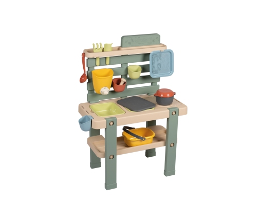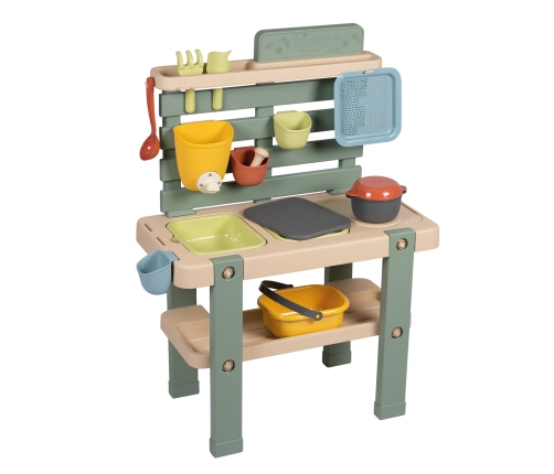 Smoby Life Kuchnia do zabawy wodą i piaskiem to pierwsza tego typu zabawka ogrodowa, która łączy w sobie radość zabawy wodą i piaskiem. Dzięki niej dzieci mogą tworzyć własne kuchenne historie na świeżym powietrzu, eksperymentując z wodą, piaskiem i naturalnymi materiałami znalezionymi w ogrodzie. To doskonały sposób na spędzenie czasu na świeżym powietrzu, rozwijając kreatywność, umiejętności manualne i społeczne.