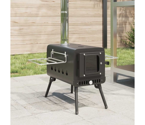 - Ērts dizains: zem telts krāsns sadegšanas kameras ir pelnu paplāte, kas atvieglo pelnu izmešanu, un divi sānu režģa plaukti drēbju vai līdzīgu priekšmetu žāvēšanai.