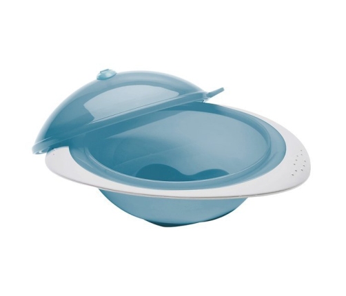 Miseczka z przykrywką. Idealnie nadaje się dla dzieci od 6 miesiąca życia. Miseczkę można używać na dwa sposoby, do podgrzewania jedzenia w mikrofali, lub do przechowywania żywności w lodówce. Tworzywo z jakiej została wykonana miseczka, jest przeznaczone do kontaktu z żywnością i nie zawiera bisfenolu A. Dzięki suwakowi para może się wydobywać.
