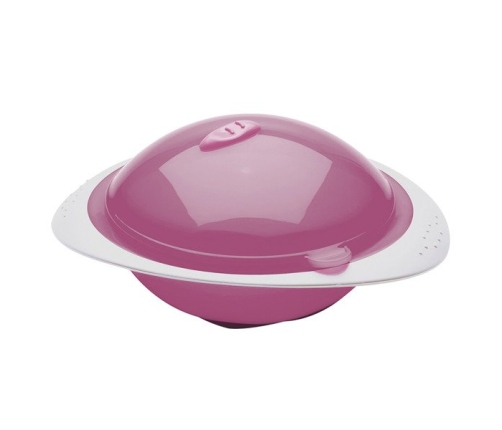 Miseczka z przykrywką. Idealnie nadaje się dla dzieci od 6 miesiąca życia. Miseczkę można używać na dwa sposoby, do podgrzewania jedzenia w mikrofali, lub do przechowywania żywności w lodówce. Tworzywo z jakiej została wykonana miseczka, jest przeznaczone do kontaktu z żywnością i nie zawiera bisfenolu A. Dzięki suwakowi para może się wydobywać.
