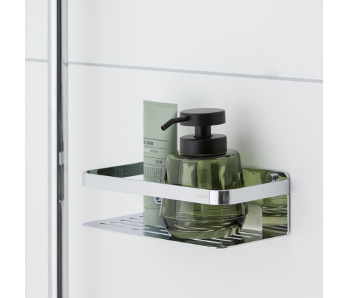 Plaukts ir izgatavots no kvalitatīviem materiāliem, kas ir piemēroti lietošanai mitrās vietās. Tam ir plakana pamatne un stīpa, kas noturēs visus kopšanas līdzekļus savā vietā. Plauktu ir viegli piestiprināt un tīrīt.