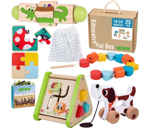 Pudełko zawiera 6 zabawek dydaktycznych od 19 miesiąca w jednym opakowaniu: