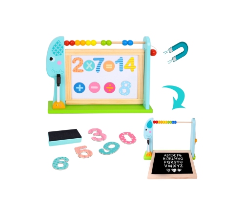 TOOKY TOY Stojący Słoń z Koralikami to dwustronna tablica z mini liczydłem. Produkt został wykonany z trwałego i grubego drewna. Tablica bawi i uczy! Kolorowe elementy sprawią, że przyciągną każdego maluszka i zagwarantują mu wiele godzin zabawy. Zabawka nie posiada ostrych krawędzi i jest dobrze wyszlifowana dzięki czemu jest bezpieczna dla małych rączek twojej pociechy. Doskonali zdolności motoryczne, pobudza wyobraźnie i do tego rozwija koordynację ręka-oko. Dziecko może szlifować naukę cyfr oraz doskonalić zdolności plastyczne. Tej tablicy nie może zabraknąć w pokoju Twojego dziecka.