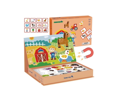 Układanka magnetyczna od marki TOOKY TOY to zestaw, który przenosi młodych poszukiwaczy przygód do czarującego świata farmy. W tym kompaktowym pudełku dzieci znajdą 6 zachwycających wzorów zwierząt hodowlanych, uroczą stodołę, przyjaznego rolnika, ciężarówkę rolniczą, a nawet jabłoń obładowaną jabłkami. Każdy projekt jest starannie podzielony na cztery do pięciu magnetycznych puzzli, dzięki czemu dzieci mogą z łatwością układać własne sceny z podwórka. Prawdziwa magia tego zestawu tkwi w magnetycznych naklejkach, które bez trudu przylegają do dołączonej tablicy magnetycznej. Ta funkcja sprawia, że tworzenie i zmienianie scenerii na farmie jest dziecinnie proste i zapewnia wiele godzin pomysłowej zabawy. Jako początkujący rolnicy dzieci mogą rozwijać swoją kreatywność i umiejętności motoryczne, odkrywając radości życia na farmie. Niezależnie od tego, czy chodzi o porządkowanie zwierząt w oborze, przejażdżkę ciężarówką rolniczą czy zbieranie jabłek z drzewa, ten zestaw zachęca do interaktywnej nauki i opowiadania historii. Magnetyczne pudełko do zabawy w farmera to nie tylko źródło rozrywki. To narzędzie edukacyjne, które zapoznaje dzieci ze zwierzętami hodowlanymi, działalnością rolniczą i światem wiejskich przygód, a jednocześnie rozwija umiejętności rozwiązywania problemów i twórczej zabawy. To przenośne gospodarstwo rolne jest idealne do zabawy i nauki w podróży.