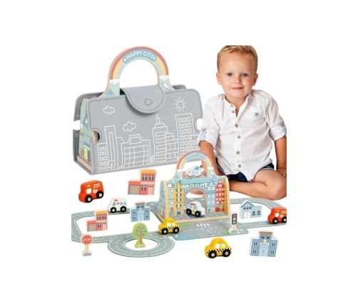 Wyobraź sobie kompletne, bajkowe miasto zamknięte w eleganckiej, filcowej torbie – gotowe do rozłożenia w każdym miejscu! Mini miasto marki Tooky Toy to nie tylko zabawka, to cały uniwersum przygód, które Twoje dziecko może stworzyć w domu, czy na wakacjach. Kolorowy zestaw z tęczową bramą, drewnianymi budynkami, pojazdami ratunkowymi i elastycznymi elementami drogi zaprasza do nieskończonych możliwości zabawy. Każdy element został zaprojektowany z dbałością o szczegóły – od wesołej karetki, przez sygnalizację świetlną, aż po urocze drzewko. To miasto, które nigdy nie śpi i zawsze czeka na nowe historie!