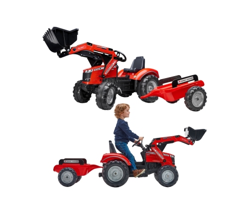 Трактор на педалях с прицепом Massey Ferguson от производителя FALK — это исполнение мечты не одного маленького тракториста. Он тщательно изготовлен с вниманием к каждой детали! Ни один фермер не откажется от такого трактора. Транспортное средство изготовлено из высококачественных материалов и предназначено для детей от 3 лет. Трактор оснащён передним ковшом, съемным прицепом с панелями и рулем с сигналом. Колеса трактора изготовлены из высококачественного пластика.