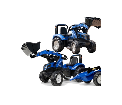 Трактор на педалях с прицепом New Holland от производителя FALK — это воплощение мечты не одного маленького тракториста. Он тщательно изготовлен с учётом каждой детали! Ни один фермер не оставит его без внимания. Транспортное средство выполнено из высококачественных материалов и предназначено для детей от 3 лет. Трактор оснащён передним ковшом, съемным прицепом с панелями и рулём с сигналом. Колеса трактора изготовлены из высококачественного пластика.