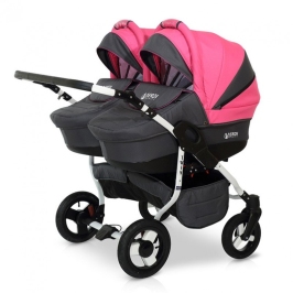 Универсальная модель коляски для двойни Verdi Twin от известного польского производителя обеспечит комфорт и полную безопасность новорожденным. Коляска комплектуется двумя люльками и прогулочными блоками. Люльки новорожденного просторные, укомплектованы матрасиками и обшиты качественным 100% хлопком (польский текстиль ULTEX-POUL). В каждом капюшоне предусмотрена съемная вентилируемая часть в жаркие дни года. Сам капюшон имеет три положения открытия, регулируется бесшумно.