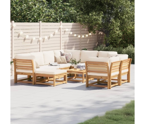 Šis elegantais koka atpūtas mēbeļu komplekts ar matračiem lieliski noderēs atpūtai dārzā vai uz terases.
