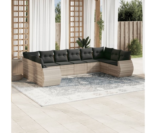 vidaXL 10-daļīgs dārza dīvāna komplekts ar matračiem, pelēka PE pinums