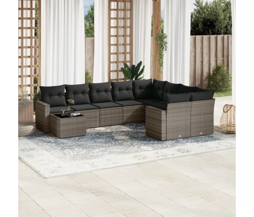 vidaXL 10-daļīgs dārza dīvāna komplekts ar matračiem, pelēks PE pinums
