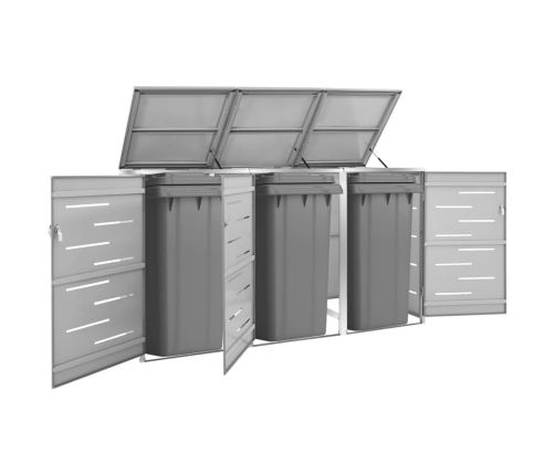 Šī atkritumu tvertnes nojume ir izgatavota no cinkota tērauda paneļa un nerūsējoša tērauda rāmja, tāpēc nojume ir izturīga un nerūsējoša. Tās dizains ir izveidots tā, lai gaiss varētu brīvi cirkulēt un tiktu novērsti nepatīkami aromāti no atkritumu tvertnes. Slēdzene nodrošinās drošu atkritumu uzglabāšanu. Jūs viegli varēsiet ielikt un izņemt savu atkritumu tvertni, pateicoties nojumes vākam un atsperēm.