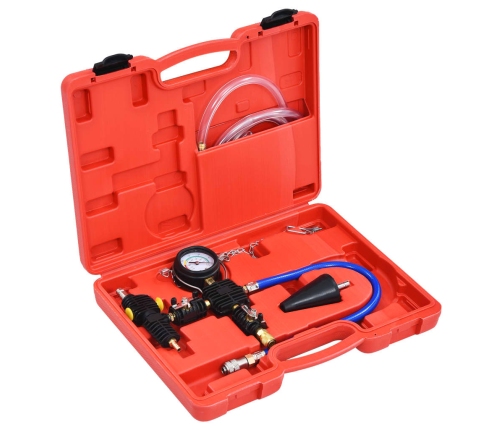 Šis komplekts novērš nepieciešamību pēc noplūdes un iztukšošanas sistēmas, kas noņemtu gaisa burbuļus. Komplektā ir iekļauta elastīga šļūtene darbam ar grūti sasniedzamiem savienojumiem. Manometram ir gumijas aizsarguzmava un spiediena samazināšanas vārsts. Tas ietver arī universālu radiatora adapteri, kas ir piemērots lielākajai daļai vieglo automašīnu, apvidus automobiļu, furgonu un mazo kravas automašīnu. Visus instrumentus jūs varēsiet transportēt un ērti uzglabāt izturīgajā plastmasas koferī. Tos ir vienkārši lietot, sekojot rokasgrāmatā norādītajām instrukcijām.