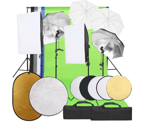 vidaXL fotostudijas komplekts – gaismas, fons, reflektori