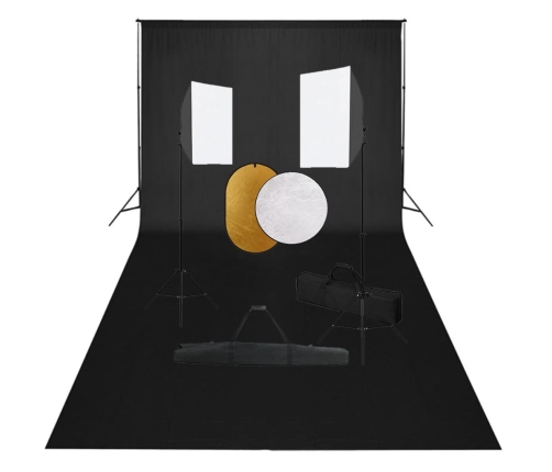 Teleskopiskā fona sistēma ir regulējama platumā un augstumā, tādēļ to var pielāgot dažādām vajadzībām. Kombinācijā ar fonu tā ir lieliski piemērota gan fotografēšanai, gan filmēšanai. Profesionālās fotostudijas gaismas padarīs gaismu vienmērīgāku un noņems ēnas, palīdzot nodrošināt ideālu vidi fotosesijai. Sūtījumā kopā ar fotostudijas gaismām ir iekļauts stabils un izturīgs tērauda trijkāja statīvs, kura garumu var noregulēt no 90 līdz 208 cm atbilstoši jūsu vajadzībām. Trijkāja statīvam ir standarta 1/4" vītne visām analogajām un digitālajām kamerām. Reflektoru komplektā ietilpst apaļš "5-vienā" reflektors un elipses formas "2-vienā" reflektors. Katram reflektoram ir dažādi virsmas paneļi. Jūs varat strādāt ar dažādām kombinācijām siltākām vai vēsākām gaismām. Fotostudijas komplektu var viegli uzglabāt un pārvietot ar sūtījumā iekļauto pārnēsāšanas somu.
