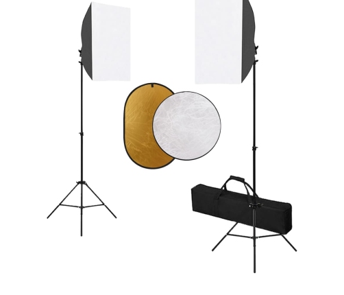 Profesionālās fotostudijas gaismas padarīs gaismu vienmērīgāku un noņems ēnas, palīdzot nodrošināt ideālu vidi fotosesijai. Sūtījumā kopā ar fotostudijas gaismām ir iekļauts stabils un izturīgs tērauda trijkāja statīvs. Tā augstumu var mainīt no 90 līdz 208 cm atbilstoši jūsu vajadzībām. Trijkāja statīvam ir standarta 1/4" vītne visām analogajām un digitālajām kamerām. Reflektoru komplektā ietilpst apaļš "5-vienā" reflektors un divi "2-vienā" reflektori. Katram reflektoram ir dažādi virsmas paneļi. Jūs varat strādāt ar dažādām kombinācijām siltākām vai vēsākām gaismām. Fotostudijas komplektu var viegli uzglabāt un pārvietot ar sūtījumā iekļauto pārnēsāšanas somu.