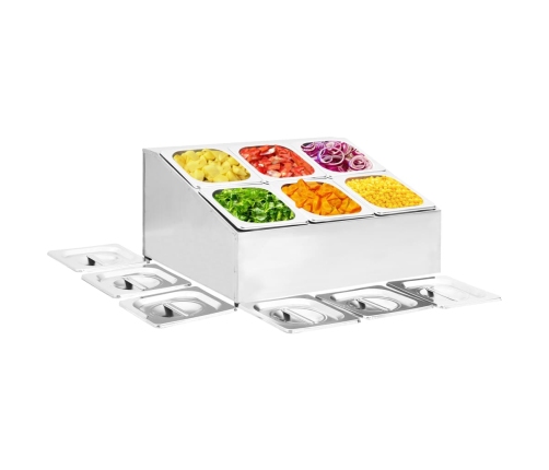 - Iekļauti 6 GN 1/6 trauki ar atbilstoša izmēra vāciņiem
