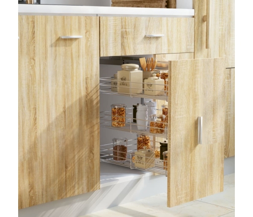 Šie virtuves izvelkamie grozi ir izgatavoti no stieples, kas ir elektrogalvanizēta ar sudraba krāsu, tāpēc tiem ir mūsdienīgs izskats un tie ir ļoti izturīgi. Komplektā iekļautās sliedītes ļaus šos grozus aizvērt un atvērt vienmērīgi un klusi.