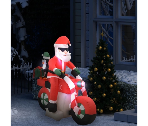 Šis 150 cm garais piepūšamais Ziemassvētku vecītis, kas sēž uz motocikla, ļaus jums pagalmā izveidot skaistu svētku dekorāciju.