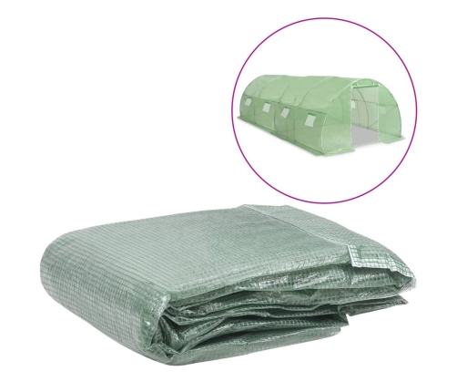 Siltumnīcas pārklājs ir izgatavots no PE, kas ir smagāks par standarta sietveida audumu. Šim siltumnīcas pārsegam ir 8 ventilācijas logi un 1 durvis.