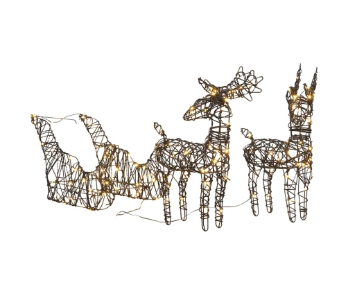 Šī krāšņā Ziemassvētku dekorācija 2 mirdzošu rotangpalmas ziemeļbriežu un kamanu formā radīs jūsu pagalmā īstu svētku noskaņu.