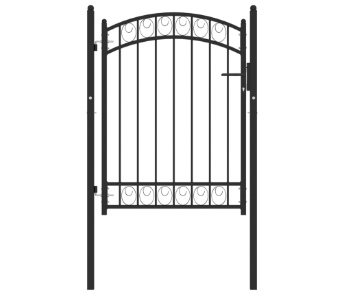 Šiem dārza žoga vārtiem ir elegants dizains ar arkveida augšmalu un stipriem horizontāliem šķērsstieņiem, kas pastiprina rāmi. Dārza žoga vārti pildīs drošības funkciju un vienlaikus radīs pasakainu ieeju jūsu īpašumā. Stiprā žoga vārtu konstrukcija ir izgatavota no izturīga tērauda ar pulverkrāsas pārklājumu, kas tos padara noturīgus pret rūsēšanu un koroziju. Vārtiem ir divi izturīgi stabi ar eņģēm un aizslēgšanas sistēma ar trīs atbilstošām atslēgām. Uzstādīšana ir vienkārša.