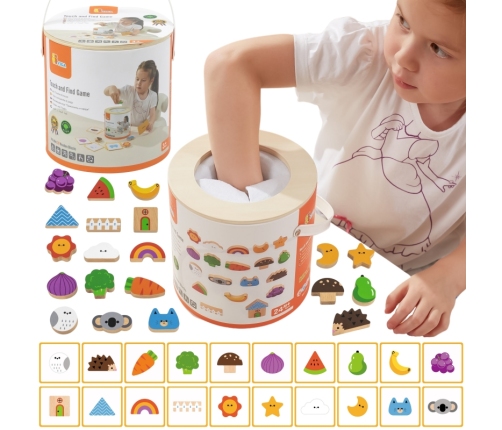 - - zestaw zawiera 20 klocków, 20 kart oraz opakowanie z dziurką przez, które dziecko bawi się w "dotknij i poczuj",