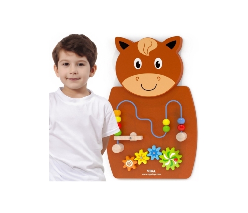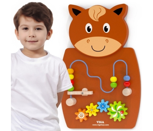 Drewniany Koń Gra z przeplatanką i kołami zębatymi od firmy Viga to jedna z czołowych zabawek, która pozwoli dziecku wejść do świata ciekawej i kreatywnej zabawy. Gra wyposażona jest w drewniane koła zębate oraz w przeplatankę koralikami na druciku. Koraliki można podrzucać za pomocą dźwigni znajdującej się na początku przeplatanki. Taka gra wprowadzi Twoje dziecko w ekscytującą zabawę i poprawi zdolność rozpoznawania kolorów i kształtów. To zalety, których nie zastąpi żadna inna zabawka. Kolorowa gra rozwija wyobraźnię i umiejętność logicznego myślenia.
