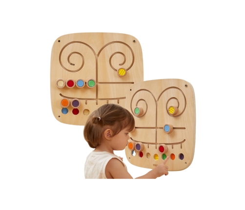 - - Drewniana tablica ścienna z labiryntem i 7 fakturami.