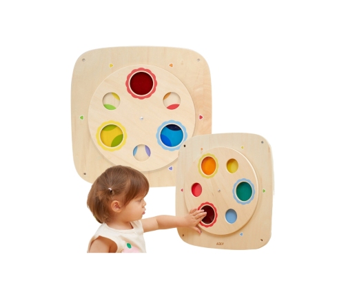 Odkryj magiczny świat kolorów z tą interaktywną tablicą drewnianą od VIGA! Ta edukacyjna zabawka została stworzona, aby w zabawny i praktyczny sposób nauczyć dzieci teorii kolorów oraz zależności przyczynowo-skutkowych. Dzięki obracanemu górnemu panelowi, dziecko może eksperymentować z łączeniem kolorów, tworząc nowe odcienie. Panel jest trwały, bezpieczny i łatwy w montażu na ścianie, co pozwala zaoszczędzić miejsce na podłodze. To idealny dodatek do pokoju malucha, przedszkola lub kącika zabaw.