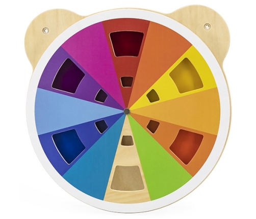 - - zabawa polega na przekręcaniu akrylowej wierzchniej tarczy mieszając kolory z tarczą pod spodem i otrzymywania nowych barw w wyniku mieszania się dwóch innych kolorów,