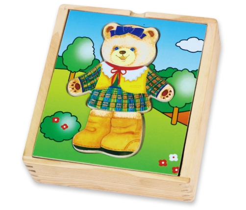 Puzzle pozwalają nam na ułożenie sześciu obrazków uroczego misia dziewczynkę, która jest w różnych nastrojach i różnych ubrankach. Zabawka, poza świetną zabawą, stymuluje zdolności manualne i zdolności logicznego myślenia, dodatkowo uczy rozpoznawania emocji.