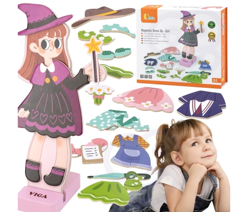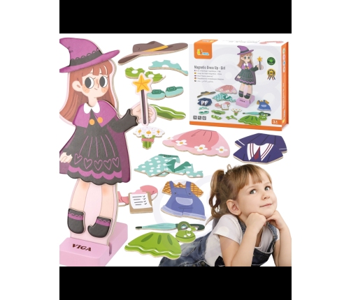 Magnetyczna ubieranka - dziewczynka od firmy Viga to doskonała zabawka dla wszystkich dzieci. Figurkę można dowolnie ubierać w dane zestawy ubranek lub przebierać je w dowolne kombinacje.