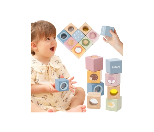 Odkryj świat niekończącej się zabawy i odkrywania z tymi 8-elementowymi, sensorycznymi, drewnianymi klockami. Zaprojektowane, aby stymulować dotyk, wzrok i słuch, każdy klocek ma unikalną fakturę, lusterko, dzwoneczek lub grzechotkę. Klocki są idealne dla małych rączek, bezpieczne, trwałe i pięknie zaprojektowane, wspierają rozwój sensoryczny, małą motorykę i wyobraźnię Twojego dziecka.