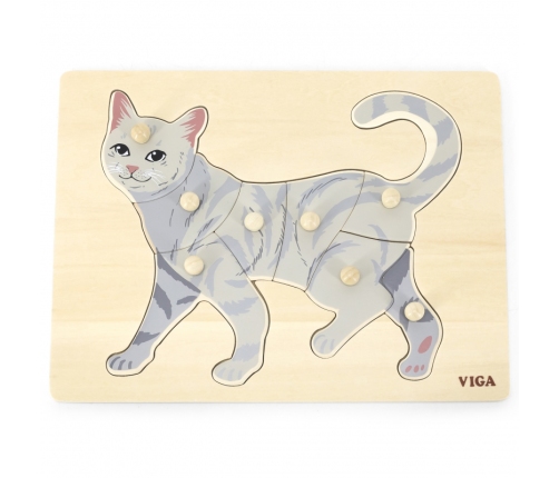 - - zadaniem dziecka jest ułożenie kotka z dostępnych elementów, dopasowując nie tylko obrazek, ale też kształt odpowiednich elementów,