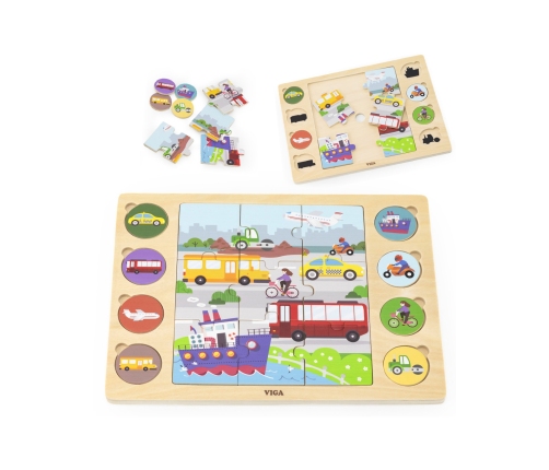 Powiększ wiedzę twojego dziecka na temat transportu wodnego i lądowego z zestawem puzzli "Odgadnij po cieniu - środki transportu"" od marki Viga. Ten wyjątkowy zestaw to nie tylko wspaniała zabawa, ale także narzędzie edukacyjne, które w sposób przemyślany wspiera rozwój malucha. Każdy element tej uroczej układanki został starannie zaprojektowany, aby pobudzać wyobraźnię, rozwijać umiejętności manualne i logiczne. To nie tylko zabawka, ale kompleksowe narzędzie edukacyjne, które wspiera wszechstronny rozwój malucha. Wysoka jakość wykonania, bezpieczne materiały oraz atrakcyjne ilustracje sprawiają, że jest to idealny wybór dla każdego rodzica, który pragnie wspierać rozwój swojego dziecka poprzez zabawę.