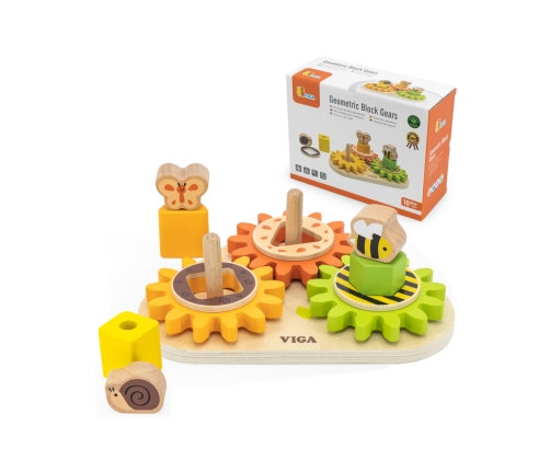 Drewniany sorter "Kształty i Mechanizmy" od renomowanej marki Viga to doskonała zabawka edukacyjna dla dzieci, która łączy naukę z zabawą. Doskonale ćwiczy pamięć, spostrzegawczość oraz uczy rozpoznawania kolorów. Sorter zaprojektowany jest w całkowicie bezpieczny dla dzieci sposób - nie posiada ostrych krawędzi, ani niebezpiecznych elementów. Przyjemne dla oka kolory, przez długi czas będą cieszyć twoje dziecko podczas zabawy. Sortowanie klocków może być wyzwaniem, zwłaszcza dla najmłodszych. Dziecko uczy się cierpliwości i wytrwałości, próbując dopasować elementy - wymaga to precyzji i koordynacji ruchowej. To doskonałe ćwiczenie dla małych rączek. Zabawa może służyć jako sorter- dziecko samodzielnie układa elementy na kołeczkach, tworząc własne wyjątkowe konstrukcje. Dodatkowo zębatki są zaprojektowane w taki sposób, że obrót jednej powoduje ruch pozostałych. Zabawka pomoże w poznaniu podstawowych praw fizyki - działanie koła zębatego. Przy zakręceniu pierwszym kołem następuje wprawianie dalszych elementów w ruch i przekazywanie siły kolejnym zębatkom.