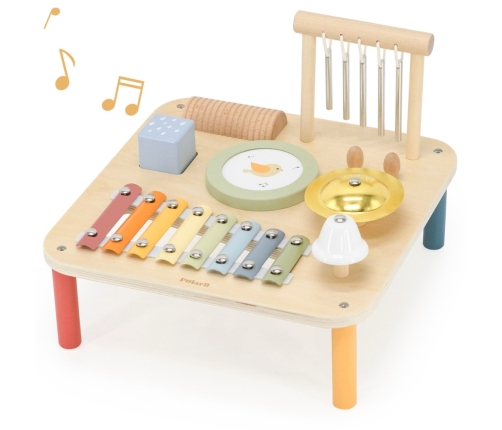 Odkryj magiczny świat dźwięków z naszym drewnianym stolikiem muzycznym! Ta interaktywna zabawka to idealny sposób na rozwijanie słuchu muzycznego, poczucia rytmu i kreatywności Twojego dziecka. Każdy element stolika kryje w sobie inne, fascynujące instrumenty, które zachęcają do eksperymentowania i tworzenia własnych melodii.
