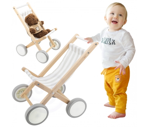 Wózek dla Lalek od marki VIGA wykonany z solidnego drewna bukowego, z dużymi plastikowymi kołami i gumowymi, antypoślizgowymi oponami. Przeznaczony jest dla lalek o rozmiarze do 38 cm.